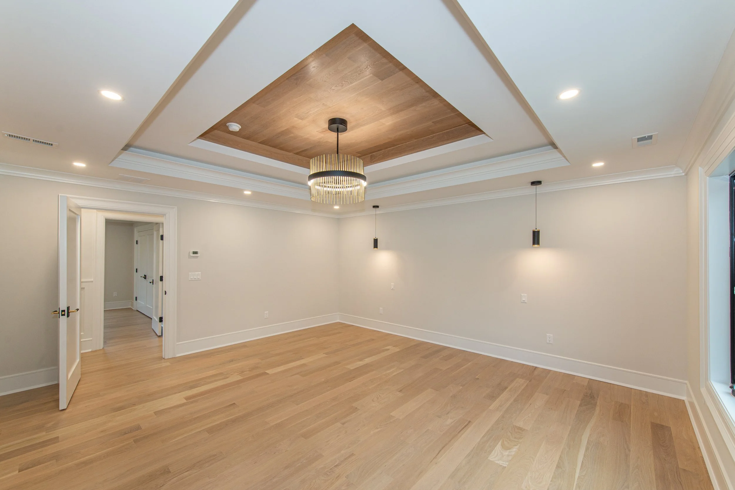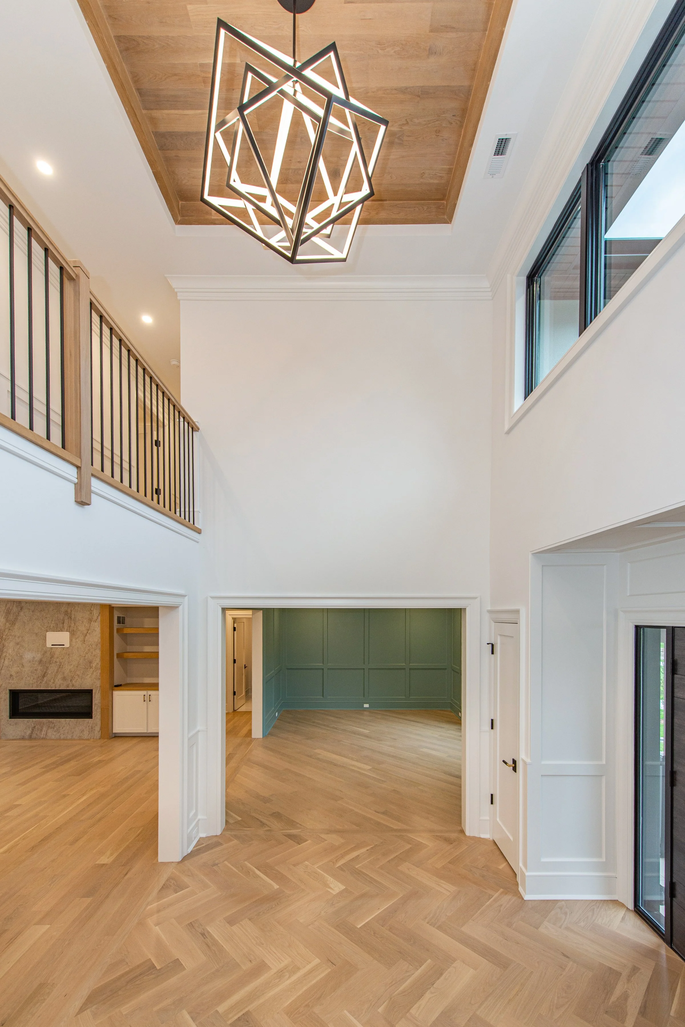 Custom wall paneling on the first floor, including dining room, living room, and foyer